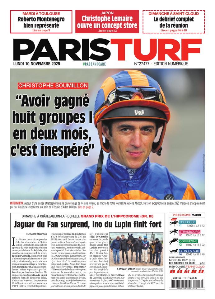 Rencontré samedi à Chantilly, Christophe Soumillon est revenu sur ces mois de collaboration avec le maître entraîneur de Ballydoyle, qui vont se poursuivre jusqu'au retour de Ryan Moore. ParisTurf :...